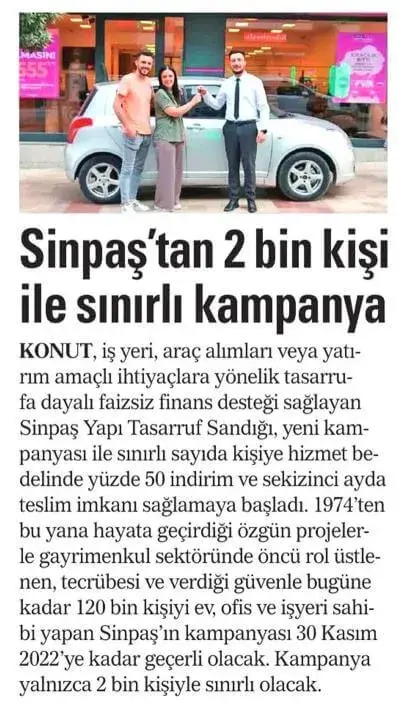 Formda verdiğiniz kişisel bilgilerinizi sadece Sinpaş Tasarruf Finansman Anonim Şirketi ve grup şirketlerinin pazarlama ve iletişim faaliyetlerinde kullanacağımızı ve Türkiye Cumhuriyeti 6698 sayılı Kişisel Verilerin Korunması kanunu kapsamında koruyacağımızı taahhüt ederiz.